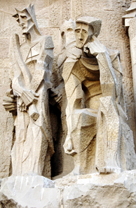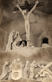 In stark contrast to the fanciful elements and uplifting message of the Nativity facade, Gaudi wanted the Passion facade to convey Jesus' suffering (The Passion) and the bleakness of his death. He wanted the facade to be cold and without ornamentation. The facade was completed by the sculpturer Josep Maria Subirachs in 1990 from Gaudi's drawings and notes.