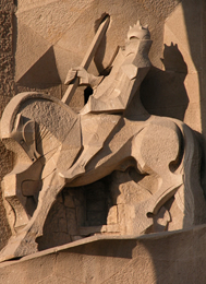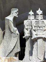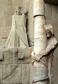 Notice that Subirach's style is angular and rigid. The opposite of Gaudi who did not believe in using straight lines. The stark lines evoke a sober feeling for the end of Jesus' life from the Last Supper to the Crucifixion.