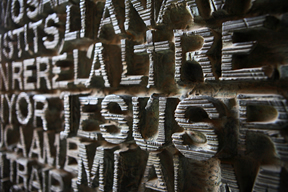Find "Jesus" in the Doors - The gospel doors contain text from the New Testament depicting the Passion of Christ. 8,000 bronze characters were used to cast the door.